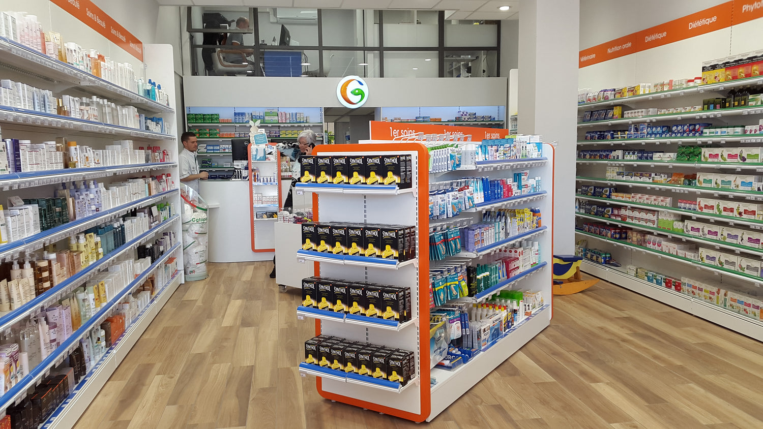Lors de la rénovation de la Pharmacie de la Côte Vermeille à Port Vendres, membre du groupement Giphar, EspaceMag a crée un agencement conforme à la charte graphique du groupement.