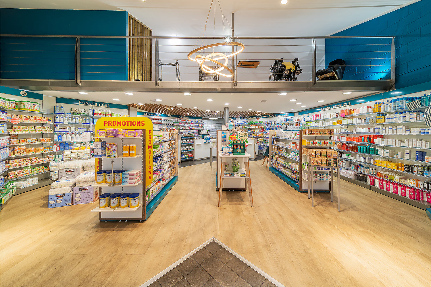 Suite au transfert de la Pharmacie Buisson dans un centre médicalisé en périphérie de Peyruis, EspaceMag a conçu un agencement au design moderne qui améliore l’expérience client et l’accessibilité des produits.