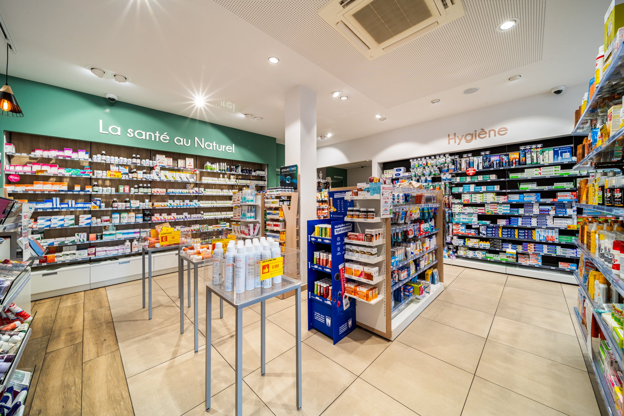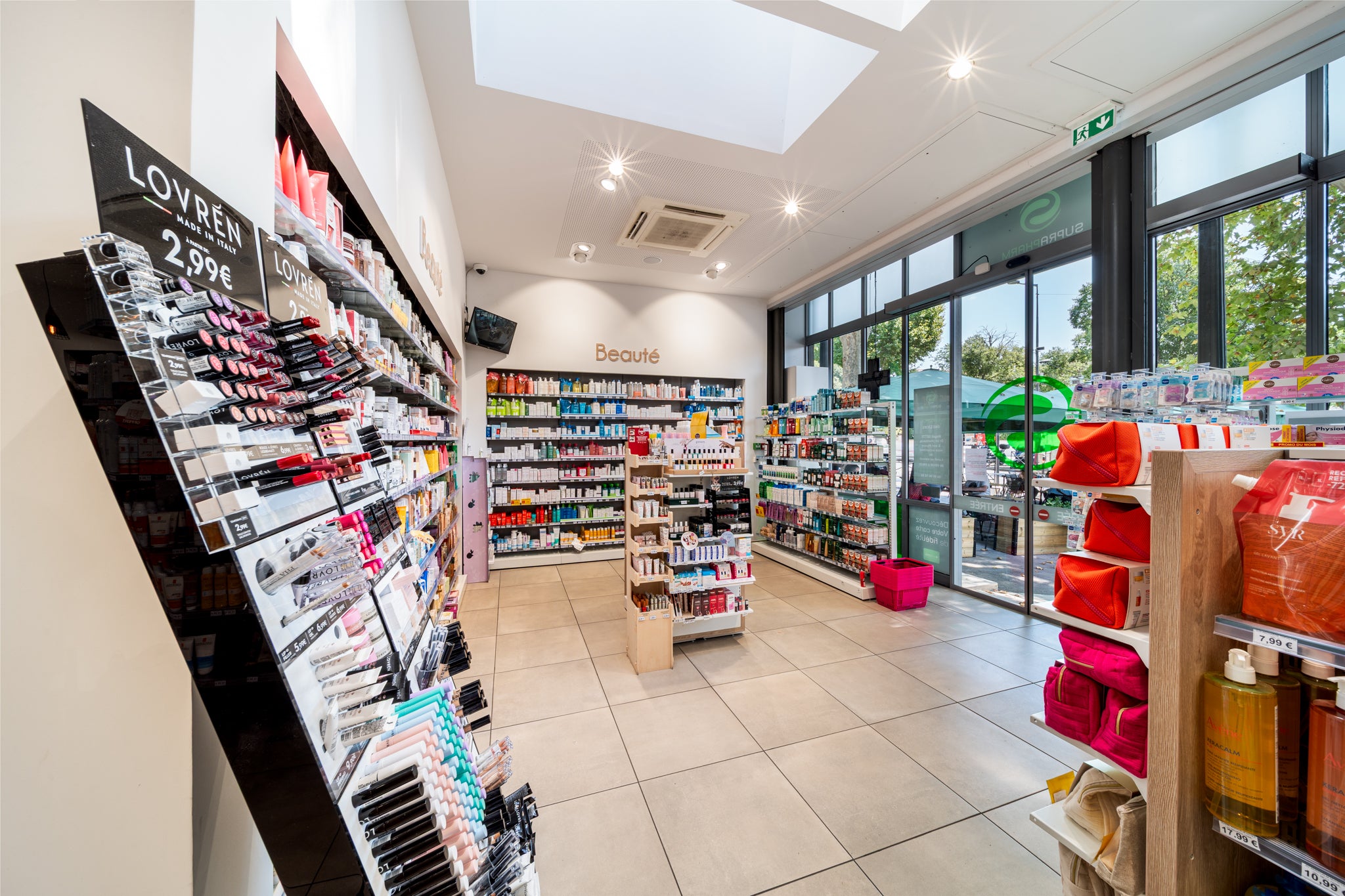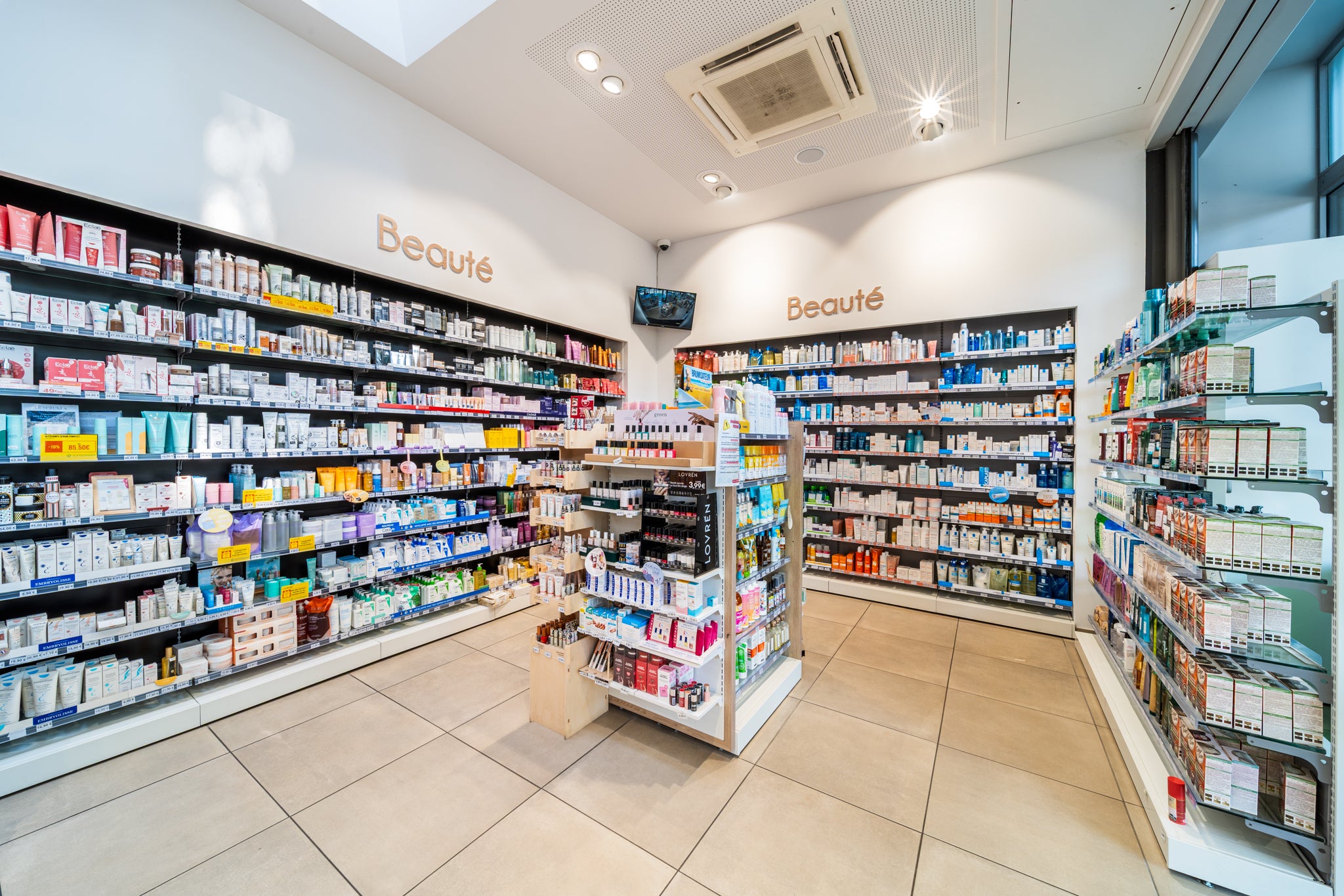 Nous avons exploité les niches murales existantes en y intégrant notre mobilier. Les meubles sans fond ont été privilégiés en façade permettant de voir la pharmacie de l’extérieur depuis cette avenue très fréquentée.